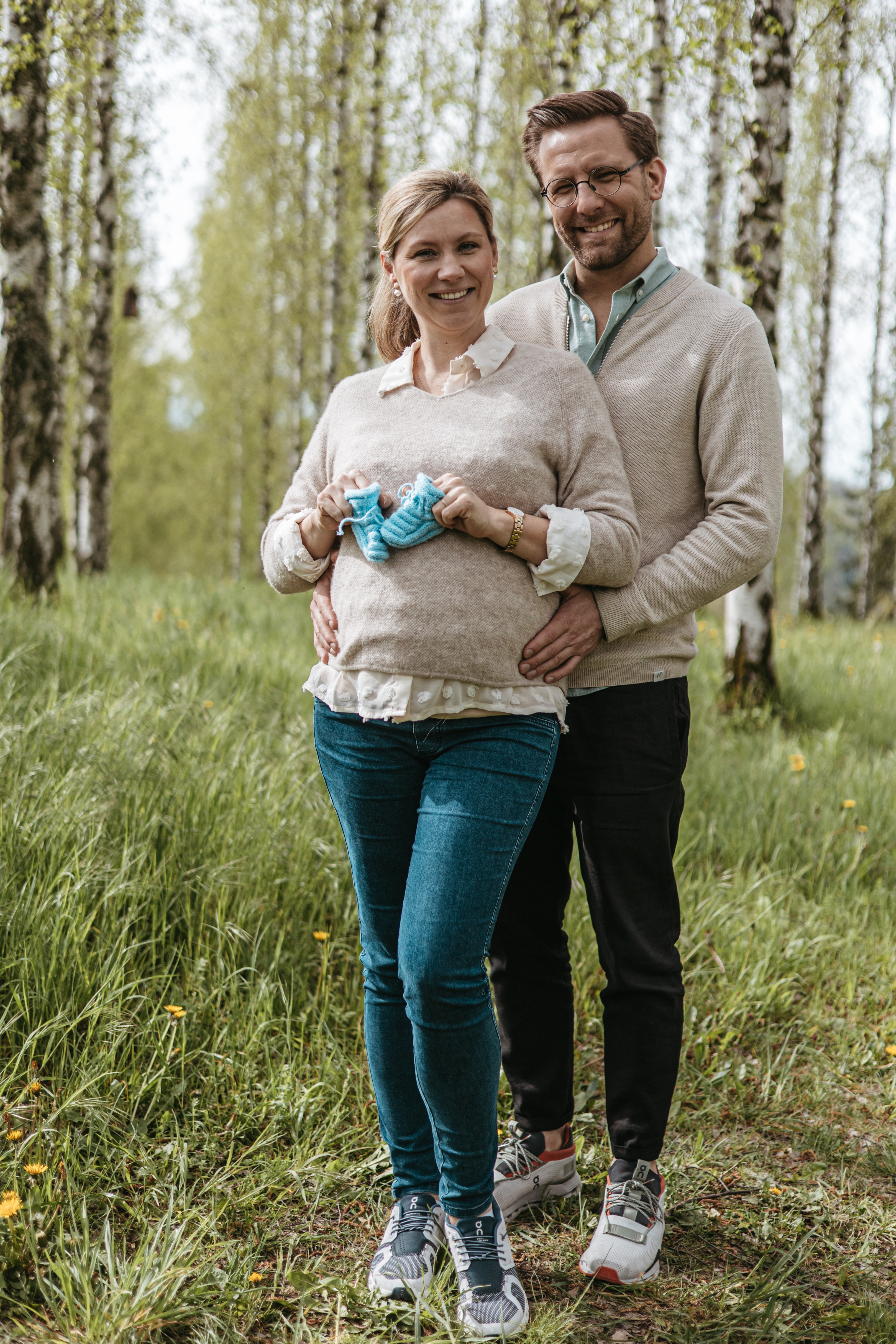 Wichtig ist, dass man sich im Outfit wohl fühlt. Harmonisch wirken bei Paarshootings oder Familienshootings ähnliche Farbtöne. Ich empfehle helle, schlichte erdige Farbtöne mit wenigen oder nur dezenten Mustern. Durch eine Jeans oder einen Hut kann der Look wieder etwas aufgelockert werden. Gerne stelle ich auch Shootingkleider oder bauchfreie Blusen zur Verfügung, die dein kleines Wunder zur Geltung bringen werden. Für Mutige oder Fotos im Studio können auch Dessous den Babybauch wunderbar in Szene setzen. Am besten kauft ihr die Dessous aber erst kurz vorher, damit sie gut sitzen. Alternativ schaut ihr mal in den Kleiderschrank eures Partners, vielleicht findet ihr hier das ein oder andere weiße Hemd? Zum Shooting könnt ihr gerne mehrere Sachen mitbringen und wir schauen Sie uns gemeinsam an. Ob du eine Bluse, ein Kleid, Unterwäsche oder auch nichts trägst – richtig ist, was du möchtest. Es ist dein Babybauch, dein Körper und deine Fotos! - Weniger ist mehr ?